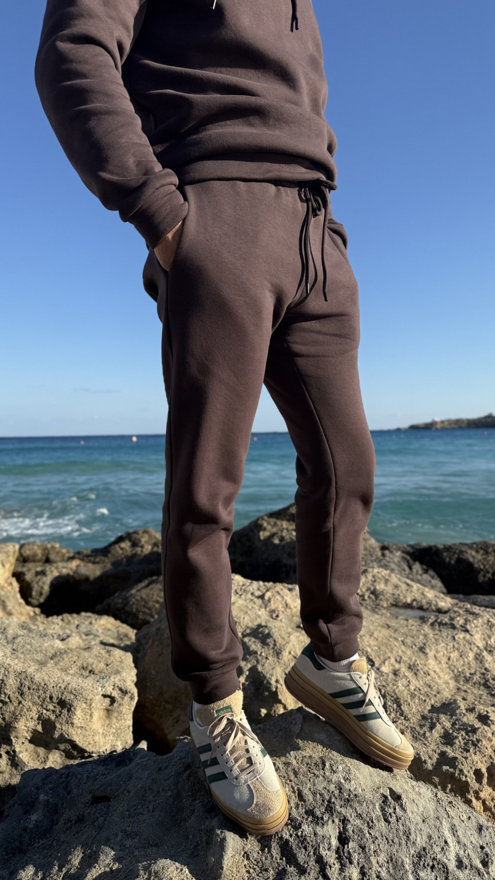 Nasze męskie spodnie dresowe to połączenie wygody i minimalistycznego designu. Uszyte z wysokiej jakości dzianiny dresowej o gramaturze 280 g/m², gwarantują komfort noszenia przez cały dzień. Regular fit zapewnia swobodę ruchu, a elastyczne mankiety u dołu nogawki nadają im sportowy charakter.