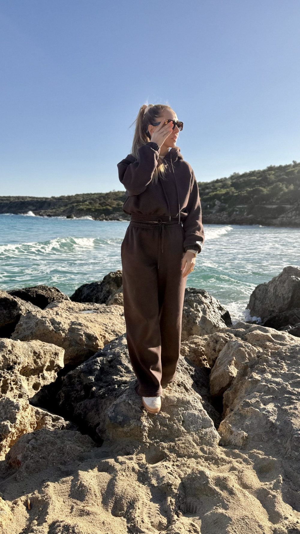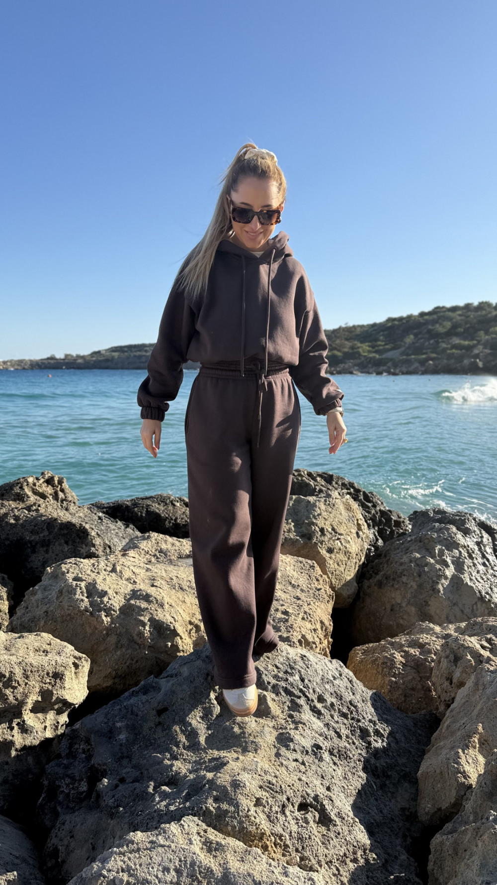 Spodnie damskie dresowe z szerokimi nogawkami Alma 152 - brązowe