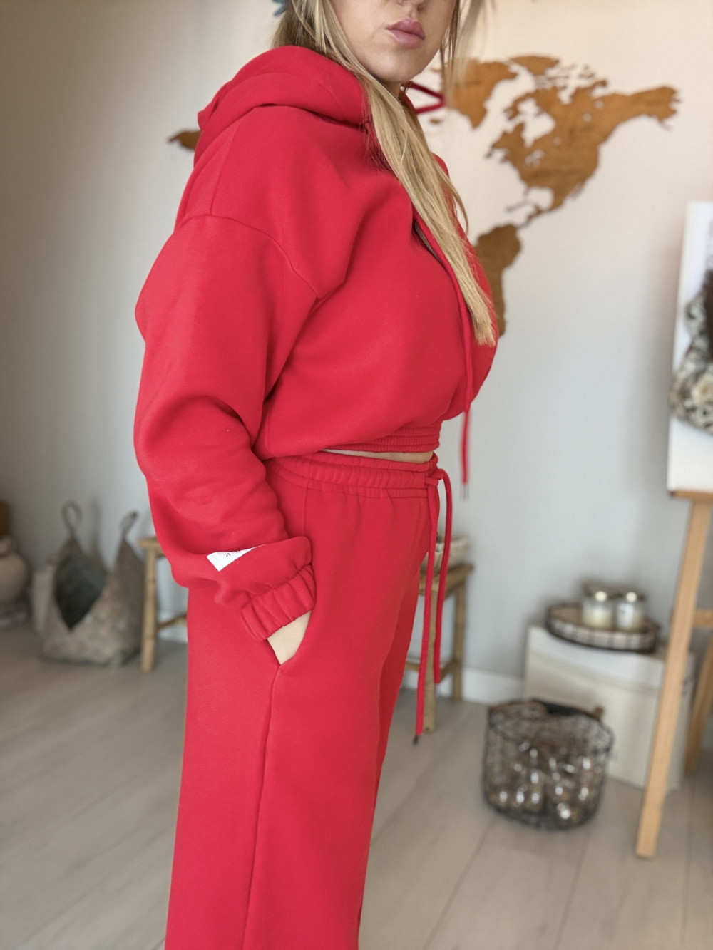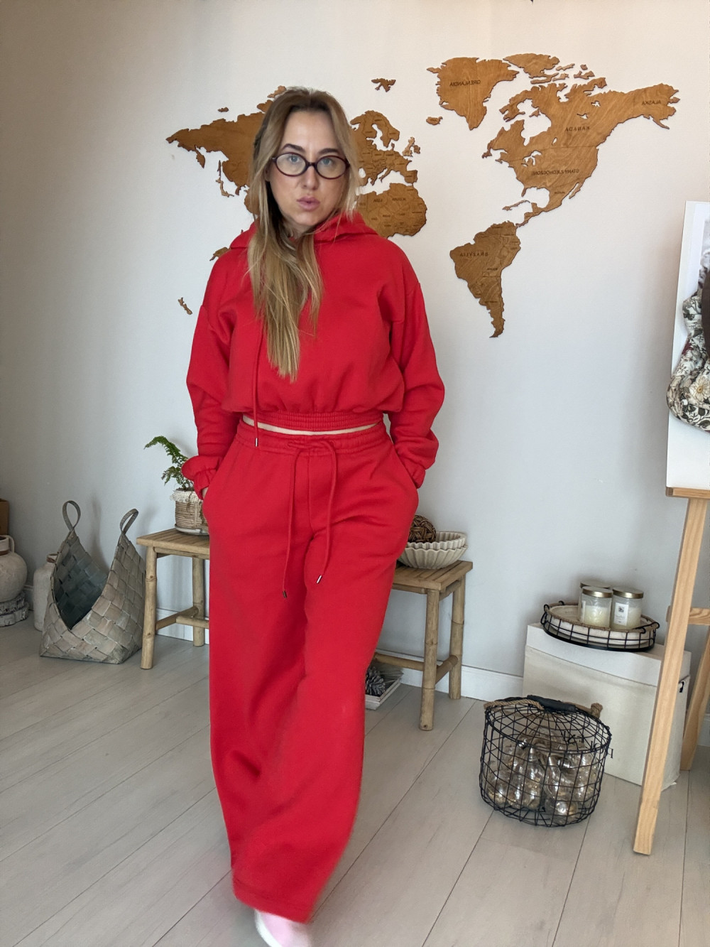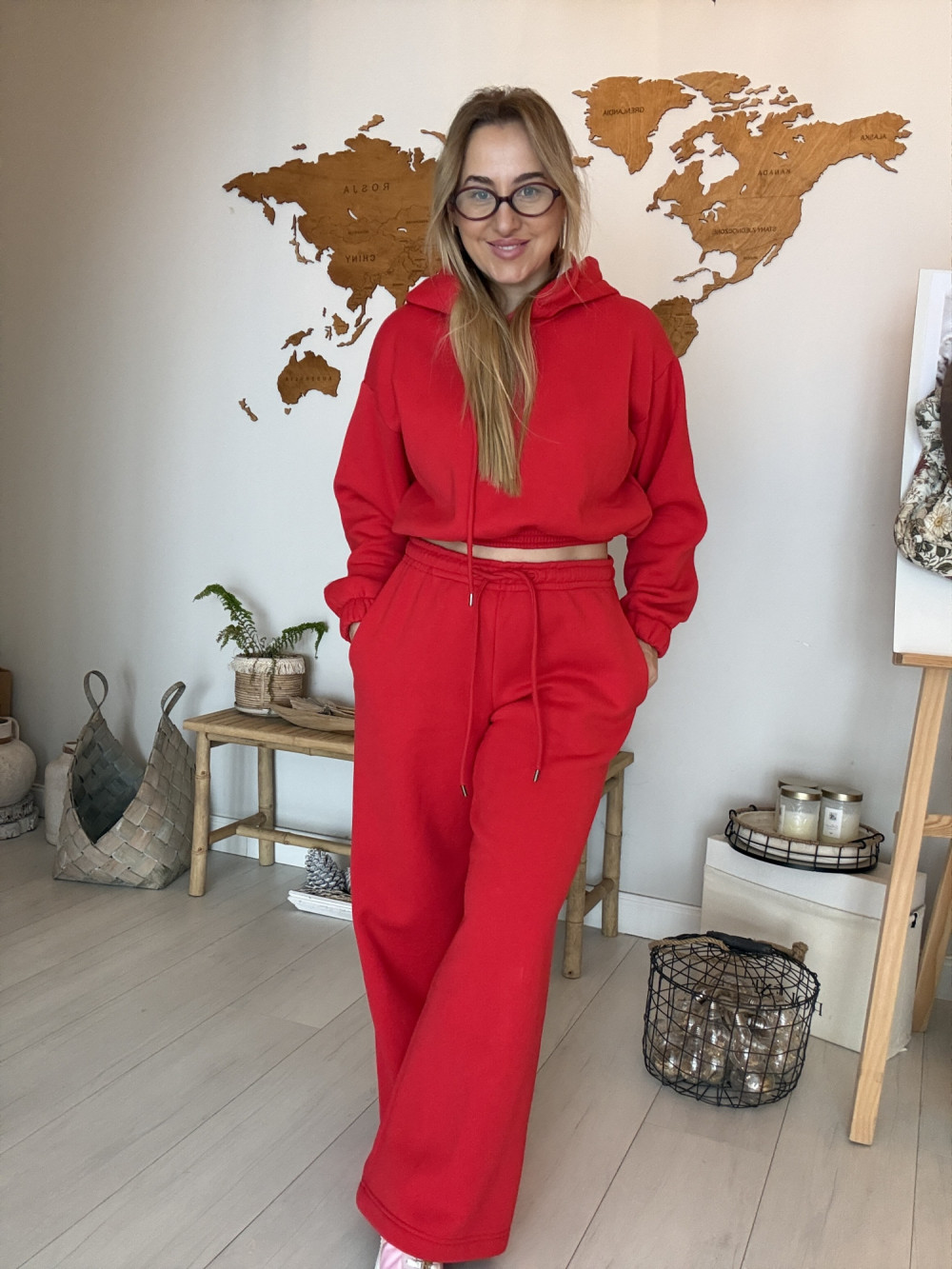 Spodnie damskie dresowe z szerokimi nogawkami Alma 152 - czerwone