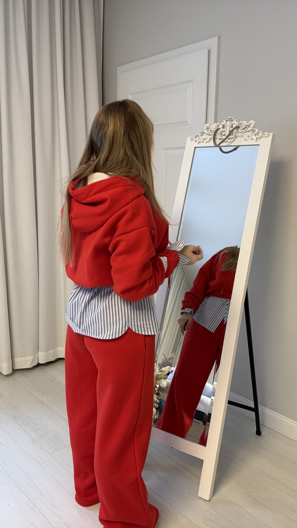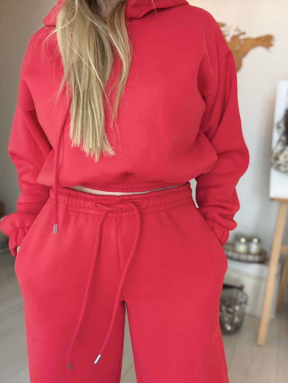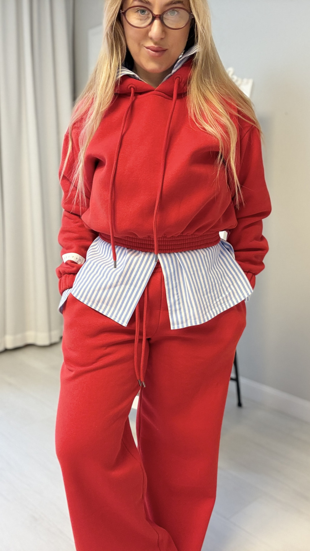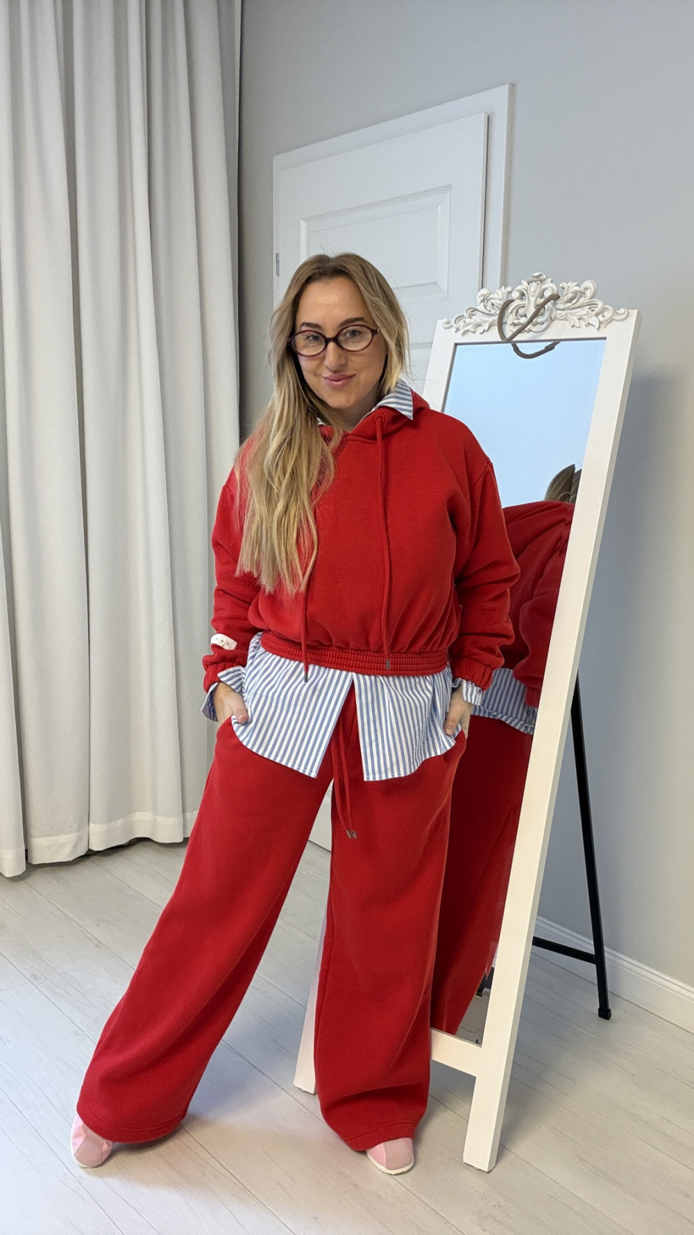 Spodnie damskie dresowe z szerokimi nogawkami Alma 152 - czerwone